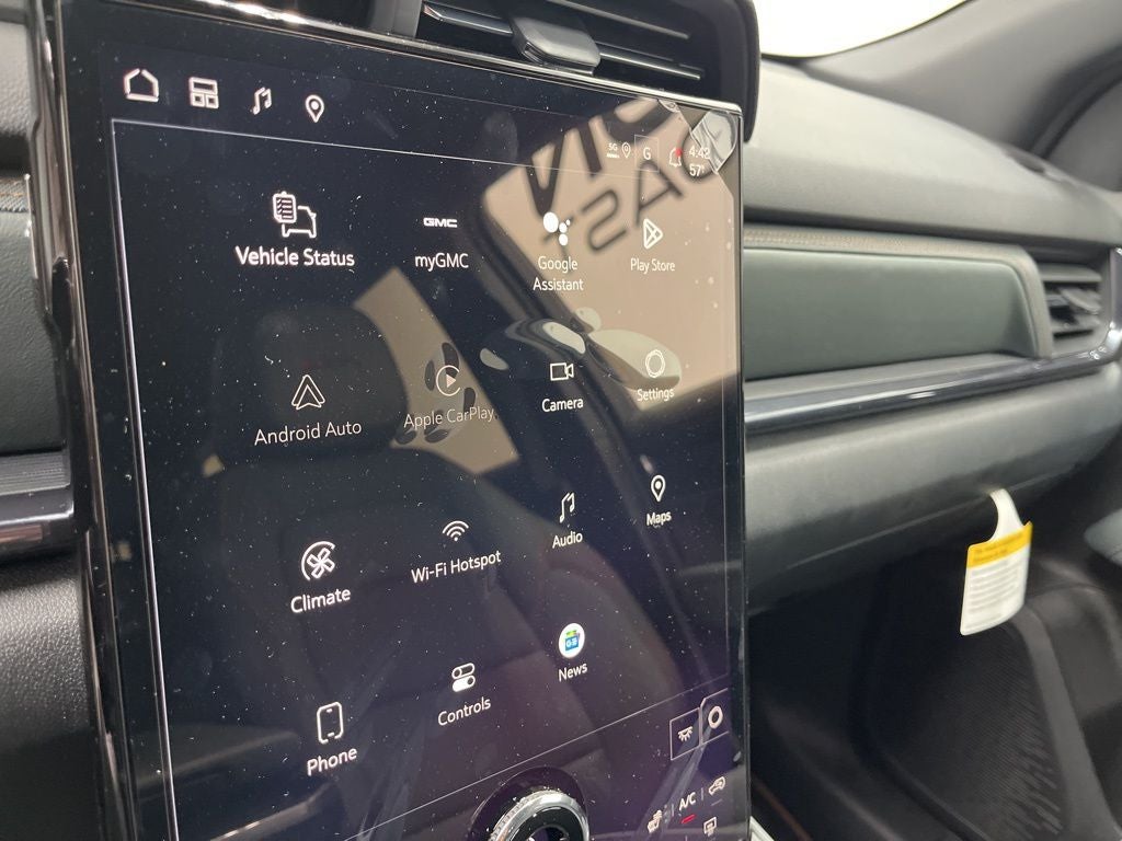 - 15" diagonal Premium GMC Infotainment System high contrast display with Google Built-In compatibility including navigation capability, color touch-screen, multi-touch display, connected apps, personalized for each driver's settings, Natural Voice Recognition and Phone Integration for Wireless Apple CarPlay/Wireless Android Auto for compatible phones