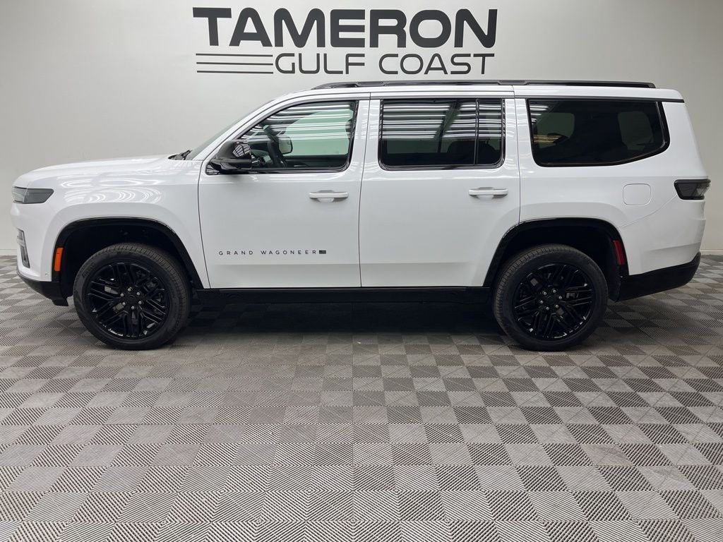 Bright White Clearcoat 2026 Jeep Grand Wagoneer 4WD 8-Speed Automatic 3.0L I6 118 Mph Maximum Speed Calibration, 19 Speaker McIntosh Audio System, 2nd Row Manual Window Shades, 3 Panel Sunroof, Augmented HUD, Black Appearance Package, Black Exterior Accents, Cargo Cover, Cluster 12 TFT Color Display, Instrument Panel, Interior Rear Facing Camera, Limited Reserve Package, Luxury Front and Rear Floor Mats, P and P Park and Unpark Assist with Stop System, Power Deployable Running Boards, Quadra-Lift Air Suspension, Quick Order Package 29D Reserve, Reversible Carpet/Vinyl Cargo Mat, Semi Active Damping, Side Distance Warning, Smartphone as a Key Prep, Surround View Camera System, Titanium Daylight Opening Upper, Titanium Upper Grille Applique, Wheels: 22 x 9 Painted Gloss Black.
