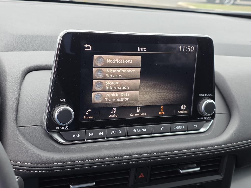 - Radio: AM/FM NissanConnect -inc: 6 speakers plus 2 tweeters, Apple CarPlay, Android Auto, 8" color touch screen display, Bluetooth®, 2 front USB type-C, Wi-Fi hotspot and NissanConnect Services powered by SiriusXM