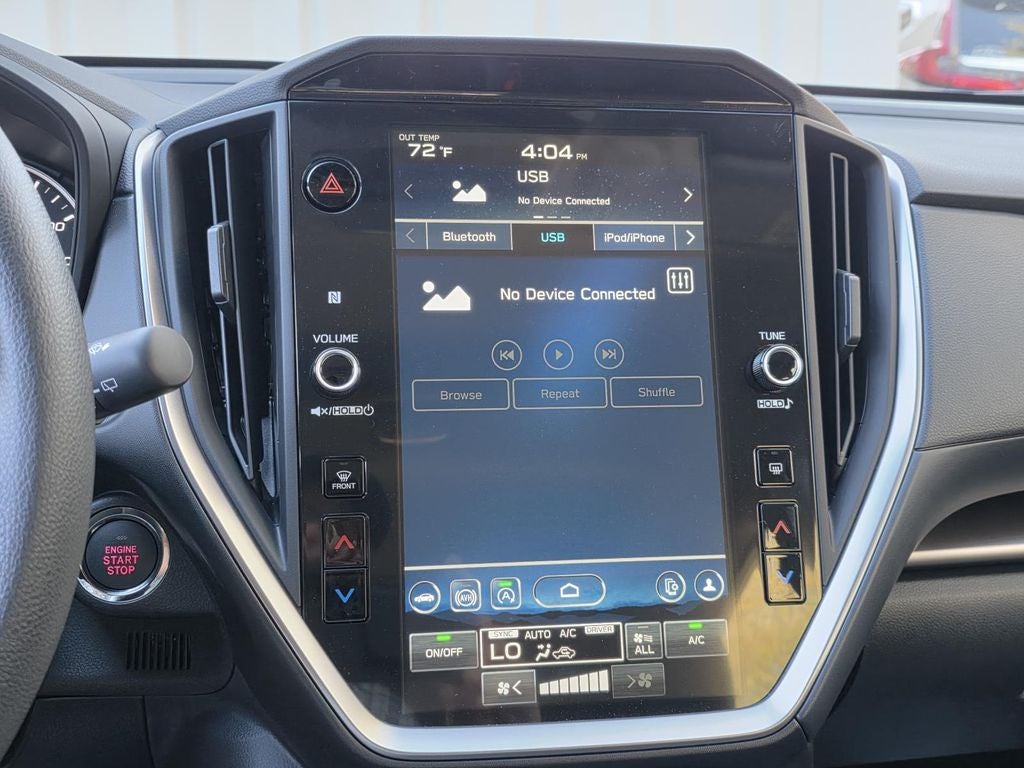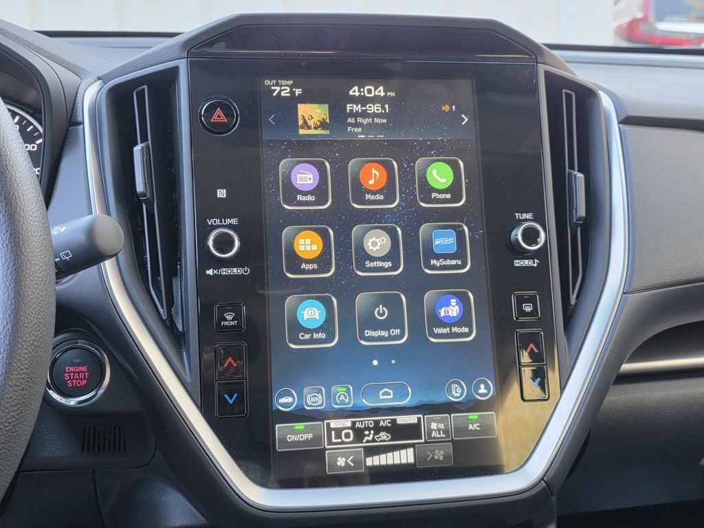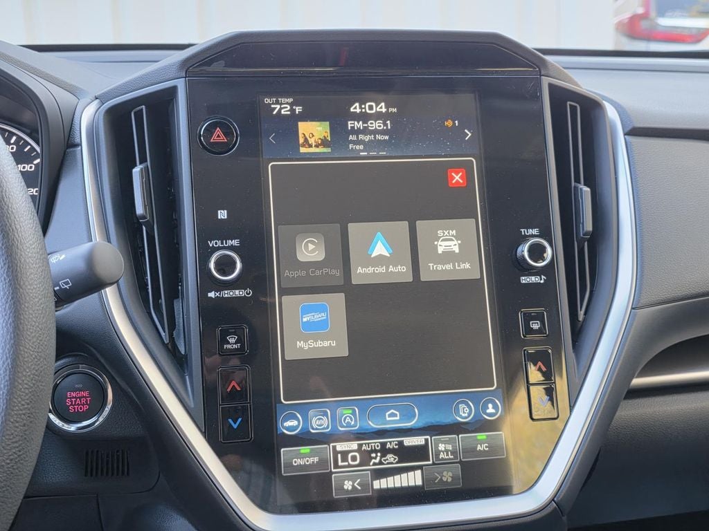 - Radio: Subaru 11.6" Multimedia Plus System -inc: valet mode, AM/FM stereo, HD Radio, multi-touch gesture high resolution display screen, voice activated controls, Bluetooth® audio streaming and hands-free phone connectivity, Bluetooth® hands-free SMS text messaging connectivity, iPod control capability, smartphone integration: wired and wireless Android Auto w/full screen view, wireless Apple CarPlay w/full screen view and wireless connection, USB and Over The Air (OTA) audio system update, audio system and Bluetooth® steering wheel control switches, 6 speakers (2 dash panel tweeter, 2 front door, 2 rear door), illuminated 3.5mm auxiliary input jack, illuminated USB A and C input charge ports, roof mounted satellite and connected services, roof mounted black antenna, connected services operation indicator, SOS emergency assistance (red button) and ehanced roadside assistance (blue i-button)
