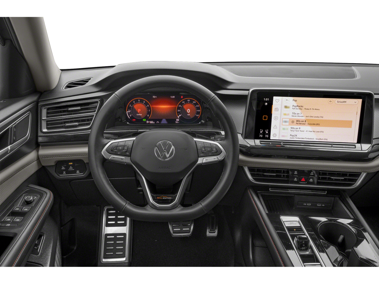 - MIB3 Composition Media -inc: 12" touchscreen multi-function center display, AM/FM/HD radio and WMA/MP3/FLAC player w/USB-C input, voice control, SiriusXM w/360L (w/3-month free trial subscription; 360L services require acceptance of SiriusXM terms), 6-speaker sound system, Bluetooth® connectivity (for compatible devices), capability for in-vehicle 4G LTE enabled Wi-Fi (cellular data plan required; includes limited trial), capability for connected vehicle services (capabilities for services vary; requires enrollment or subscription), App-Connect smartphone integration (w/Apple CarPlay, Android Auto and MirrorLink) via USB, wireless App-Connect smartphone integration (for compatible devices) w/multi-phone pairing capability and Qi wireless charger up to 15W (for compatible mobile phones and accessories) in front row All connected vehicle services subject to terms and limitations. Some services, which include emergency assistance services, require a paid subscription. See dealer or vw.com/connected for important details.