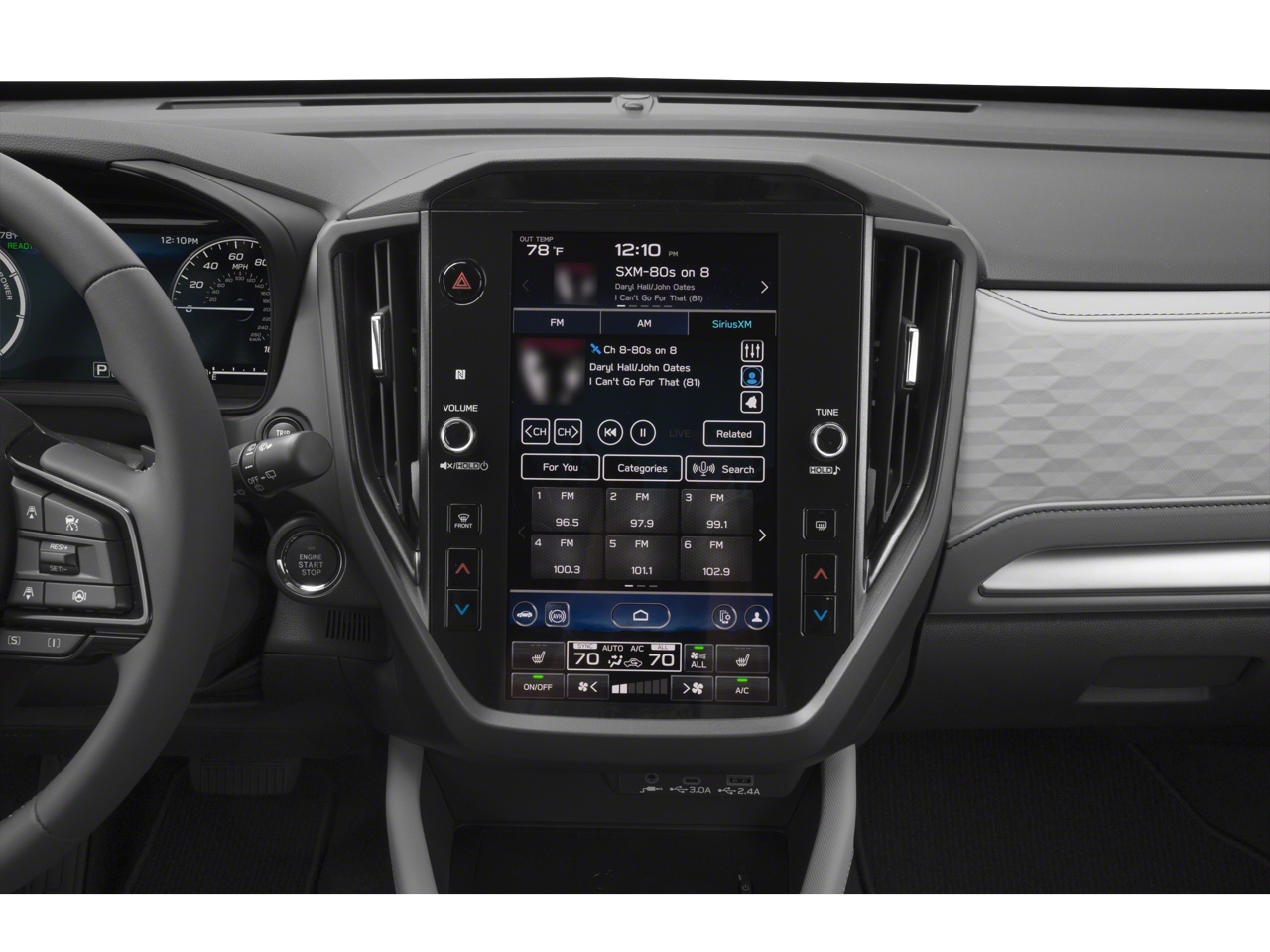 - Radio: Subaru 11.6" Multimedia Navigation System -inc: valet mode, integrated center information display, AM/FM stereo HD Radio, multi-touch gesture high resolution display screen, voice activated controls, voice activated navigation, Bluetooth® audio streaming and hands-free phone connectivity w/SMS text messaging (refer to Subaru.com for cellphone compatibility), TomTom navigation software w/what3words, iPod control capability, smartphone integration: Android Auto and Apple CarPlay w/full screen view and wireless connection, SiriusXM satellite radio w/360L (free 4-month trial subscription included), USB and Over The Air (OTA) audio system update, USB and Map Over The Air (MOTA) TomTom navigation system update (3 years free map updates), steering wheel controls, 6 speakers, 3.5mm auxiliary input jack and roof mounted audio, satellite antenna and SiriusXM Travel Link (4 months free trial included/subscription required after)