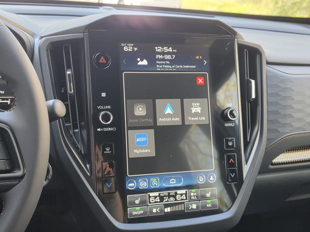 - Radio: Subaru 11.6" Multimedia Plus System -inc: valet mode, integrated center information display, AM/FM stereo HD Radio, multi-touch gesture high resolution display screen, voice activated controls, Bluetooth® audio streaming and hands-free phone connectivity w/SMS text messaging (refer to Subaru.com for cellphone compatibility), iPod control capability, smartphone integration: Android Auto and Apple CarPlay w/full screen view and wireless connection, SiriusXM satellite radio w/360L (free 4-month trial subscription included), USB and Over The Air (OTA) audio system update, steering wheel controls, 6 speakers, 3.5mm auxiliary input jack and roof mounted audio and satellite antenna