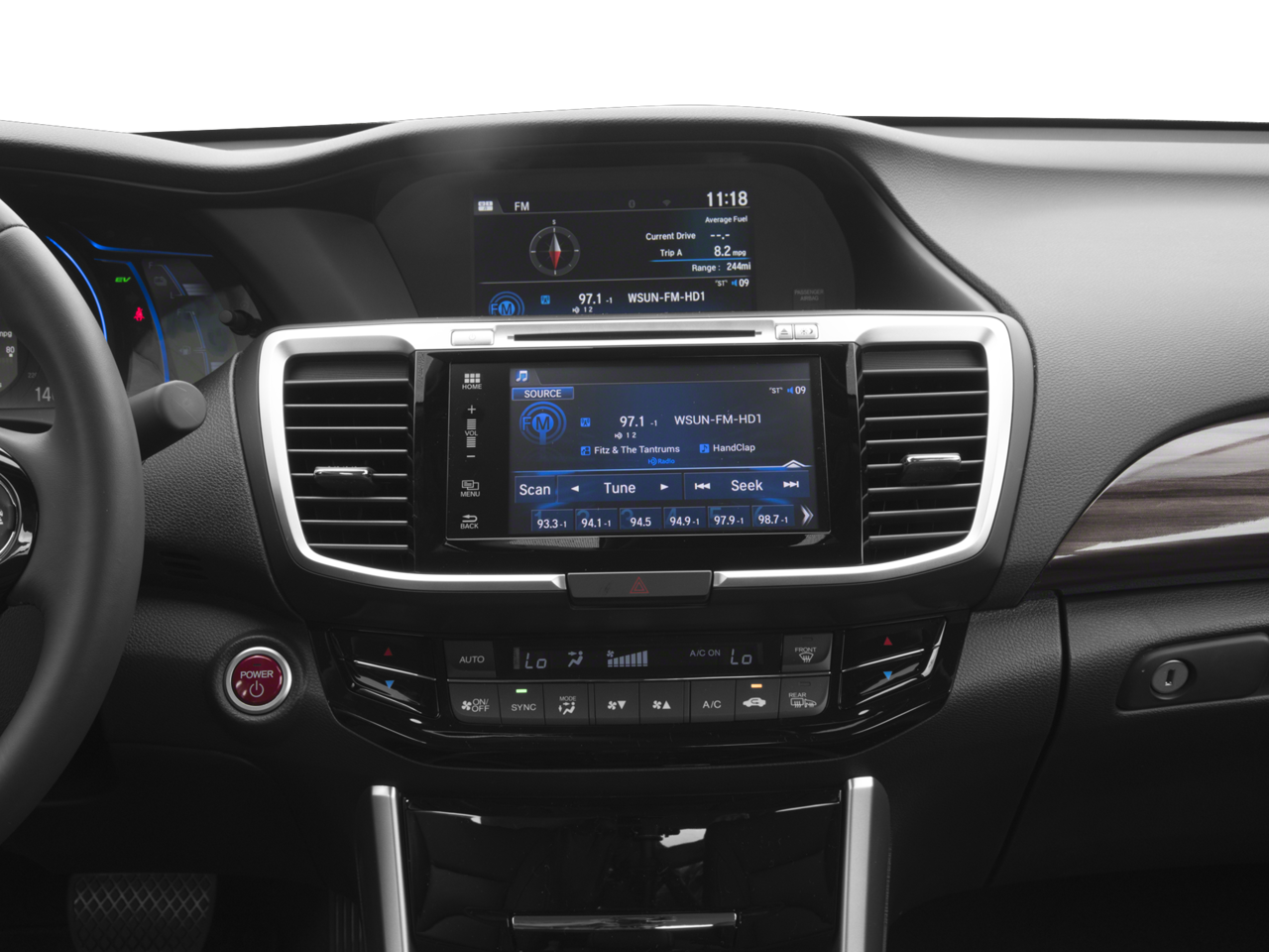 - Radio: 360-Watt AM/FM/HD Premium Audio System -inc: 7 speakers, subwoofer, SiriusXM satellite radio, 7" Display Audio w/high-resolution WVGA (800x480) electrostatic touch-screen w/i-MID and customizable feature settings, MP3/Windows Media Audio (WMA) playback capability, Bluetooth® HandsFreeLink, Bluetooth® streaming audio, Pandora compatibility, SMS text message function, radio data system (RDS), speed-sensitive volume control (SVC), USB audio interface w/1.5-amp charging port in front and 1.0-amp charging port in center console, HondaLink, Apple Carplay, Android Auto, illuminated steering wheel-mounted audio controls and fin-type roof-mounted antenna