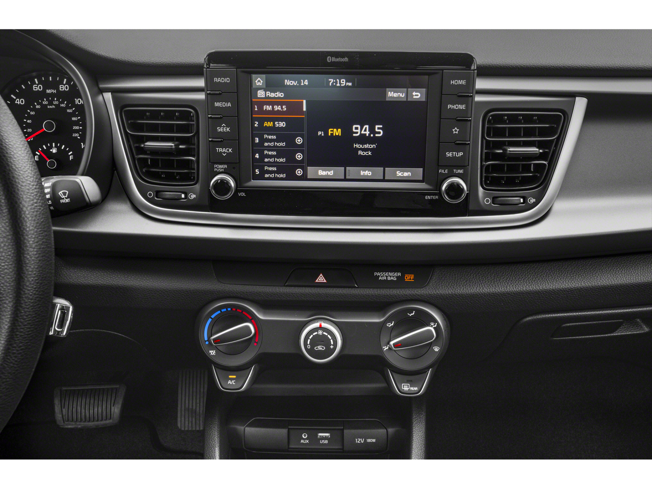 - Radio: UVO Play AM/FM/MP3 Audio System -inc: 6 speakers (4 speakers + tweeter speakers), 7" touch screen, Rear View Monitor (RVM), rear park assist system, USB/auxiliary input jack, USB charger, support for Apple CarPlay and Android Auto smartphone integration and steering wheel-mounted audio controls
