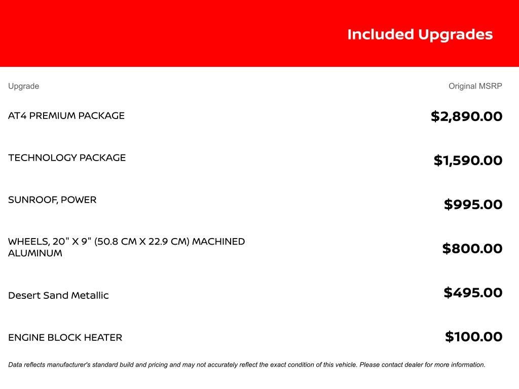 COMPLIMENTARY 3 MONTH 3 THOUSAND MILE COMPREHENSIVE WARRANTY ON QUALIFYING VEHICLES!!! Eastern Shore Nissan is proud to offer this great 2022 GMC Sierra 1500 in Desert Sand Metallic This vehicle has passed our comprehensive inspection with flying colors and comes with the following features; AT4 Preferred Package (Adaptive Cruise Control, Power Sliding Rear Window w/Rear Defogger, and Universal Home Remote), AT4 Premium Package (Off-Road High Clearance Step (LPO)), Preferred Equipment Group 4SB (120-Volt Bed Mounted Power Outlet, 120-Volt Instrument Panel Power Outlet, 2 Charge/Data USB Ports Inside Center Console, 2 Type-C Charge-Only Rear USB Ports, 2 USB Ports, 220 Amp Alternator, Auto-Locking Rear Differential, Black Chrome Header & Grille Insert Bars, Color-Keyed Carpeting Floor Covering, Compass, Deep-Tinted Glass, Electric Rear-Window Defogger, Electrical Steering Column Lock, Floor-Mounted Center Console, Front Prem Floor Liners w/Removable Carpet Insert, Front Rainsensing Wipers, GMC Connected Access Capable, HD Rear Vision Camera, Heated 2nd Row Outboard Seats, Heated Driver & Front Outboard Passenger Seating, Heated Steering Wheel, Heavy-Duty Air Filter, Hill Descent Control, Hitch Guidance w/Hitch View, In-Vehicle Trailering App, Integrated Trailer Brake Controller, Keyless Open & Start, LED Cargo Area Lighting, OnStar & GMC Connected Services Capable, Perimeter Lighting, Power Door Locks, Power Front Passenger Windows w/Express Up/Down, Power Front Windows w/Driver Express Up/Down, Power Rake & Telescoping Steering Column, Power Rear Windows w/Express Down, Premium Bose 7-Speaker Sound System, Push Button Start, Rear Prem Floor Liners w/Removable Carpet Insert, Rear Wheelhouse Liners, Red Recovery Hooks, Remote Vehicle Starter System, SiriusXM w/360L, Spray-On Pickup Bed Liner w/AT4 Logo, Steering Wheel Audio Controls, Theft Deterrent System (Unauthorized Entry), Ventilated Driver & Front Passenger Seats, Wi-Fi Hotspot Capable, Wireless Charging, and Wireless Phone Projection), Sierra Safety Plus Package (HD Surround Vision, Rear Cross Traffic Braking, Rear Pedestrian Detection, Trailer Camera Provisions, Trailer Side Blind Zone Alert, and Ultrasonic Front & Rear Park Assist), Technology Package (Bed View Camera, Multicolor 15 Diagonal Head-Up Display, and Rear Camera Mirror), Trailering Package (Hitch Guidance), 10-Speed Automatic, 4WD, Jet Black With Kalahari Accents Leather, 10-Way Power Driver Seat Adjuster w/Lumbar, 10-Way Power Passenger Seat Adjuster w/Lumbar, 18 x 8.5 Machined Aluminum Wheels, 3.23 Rear Axle Ratio, 4-Wheel Disc Brakes, 7 Speakers, ABS brakes, Air Conditioning, Alloy wheels, AM/FM radio: SiriusXM with 360L, Apple CarPlay/Android Auto, Auto High-beam Headlights, Auto-dimming door mirrors, Auto-dimming Rear-View mirror, Automatic Emergency Braking, Automatic temperature control, Block heater, Brake assist, Buckle to Drive, Bumpers: body-color, Delay-off headlights, Driver door bin, Driver Memory, Driver vanity mirror, Dual front impact airbags, Dual front side impact airbags, Electronic Stability Control, Emergency communication system: OnStar and GMC Connected Services capable, Engine Block Heater, Following Distance Indicator, Forward Collision Alert, Front anti-roll bar, Front Bucket Seats, Front Center Armrest, Front dual zone A/C, Front fog lights, Front License Plate Kit, Front Pedestrian Braking, Front reading lights, Front wheel independent suspension, Fully automatic headlights, Heated door mirrors, Heated front seats, Heated rear seats, Heated steering wheel, Illuminated entry, IntelliBeam Automatic High Beam On/Off, Lane Keep Assist w/Lane Departure Warning, Low tire pressure warning, Memory seat, Navigation System, Not Equip w/Heat & Vent Seat Cushion Blower Motor, Not Equipped w/Front & Rear Park Assist, Not Equipped w/Steering Column Lock, Occupant sensing airbag, Off-Road Suspension, Outside temperature display, Overhead airbag, Overhead console, Panic alarm, Passenger door