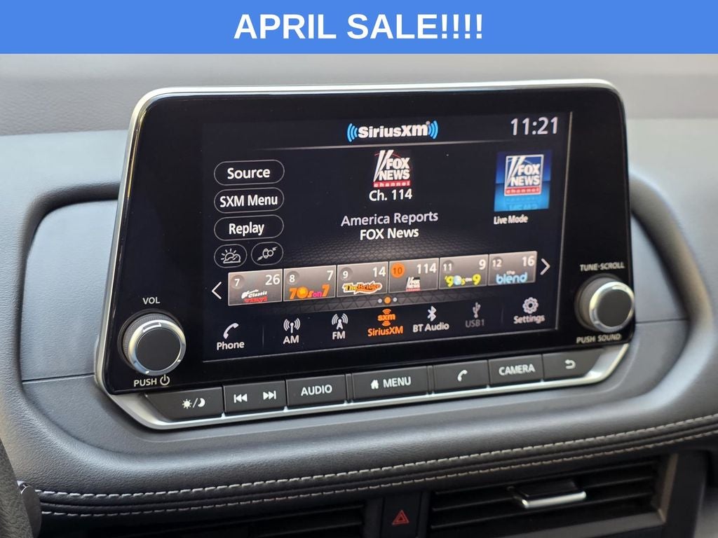 - Radio: AM/FM -inc: 6 speakers, NissanConnect featuring Apple CarPlay and Android Auto, 8" color touch screen display, Bluetooth®, WiFi hotspot and NissanConnect services powered by SiriusXM