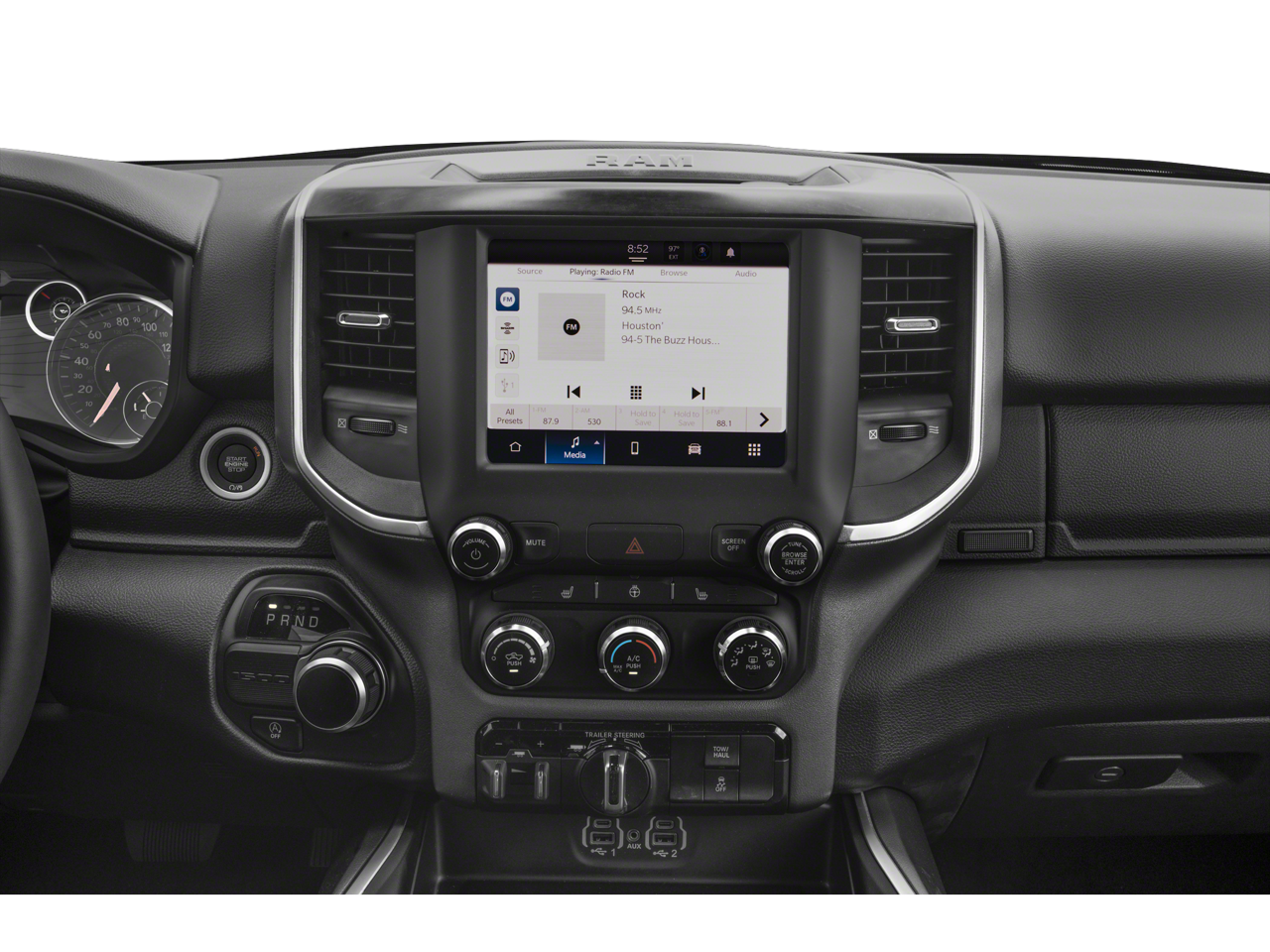 The Big Horn/Lone Star trim level offers a comprehensive package of advanced technology and premium amenities, including the Uconnect 5 infotainment system with an 8.4-inch display, SiriusXM satellite radio, and a 4G LTE Wi-Fi hotspot. Stay connected and entertained on the go with seamless integration of your smartphone through Apple CarPlay and Android Auto.