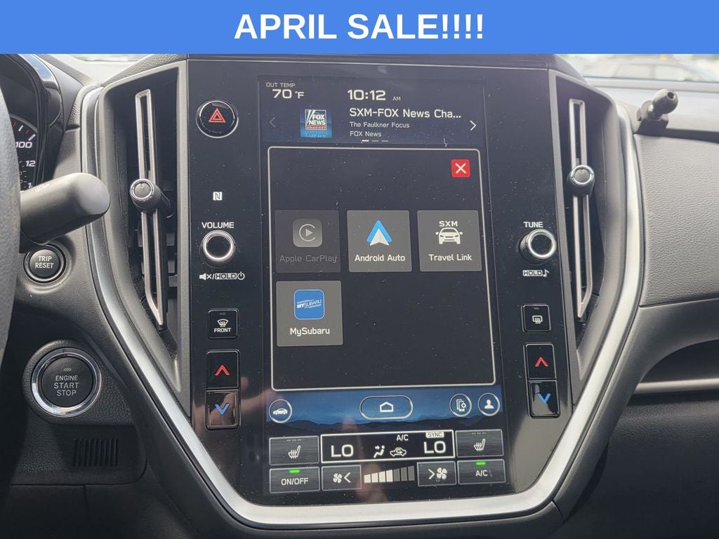 - Radio: Subaru STARLINK 11.6" Multimedia Plus Sys -inc: AM/FM stereo HD Radio, multi-touch gesture high resolution display screen, voice activated controls, Bluetooth® audio streaming connectivity, Bluetooth® hands-free phone connectivity, Bluetooth® hands-free SMS text messaging connectivity (applicable w/compatible cell phone), Near Field Communication (NFC), iPod control capability, rear-vision camera display, SiriusXM All Access radio (4 months free trial/subscription required after), SiriusXM w/360L (4 months free platinum trial included/subscription required after), SiriusXM Travel Link (4 months free trial/subscription required after), smartphone integration: Android Auto w/full screen view and wireless connection, Apple CarPlay w/full screen view and wireless connection, STARLINK cloud applications, USB and Over The Air (OTA) audio system update, 6 speakers and roof mounted audio, satellite and connected services antenna