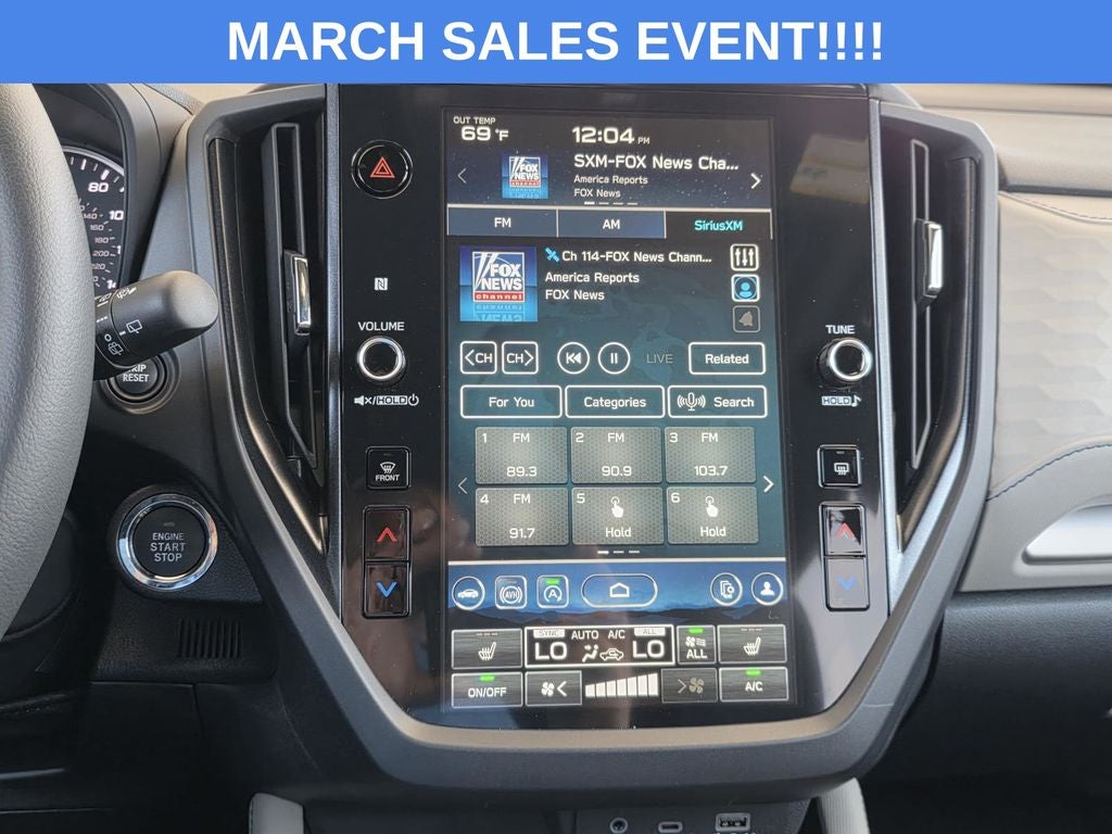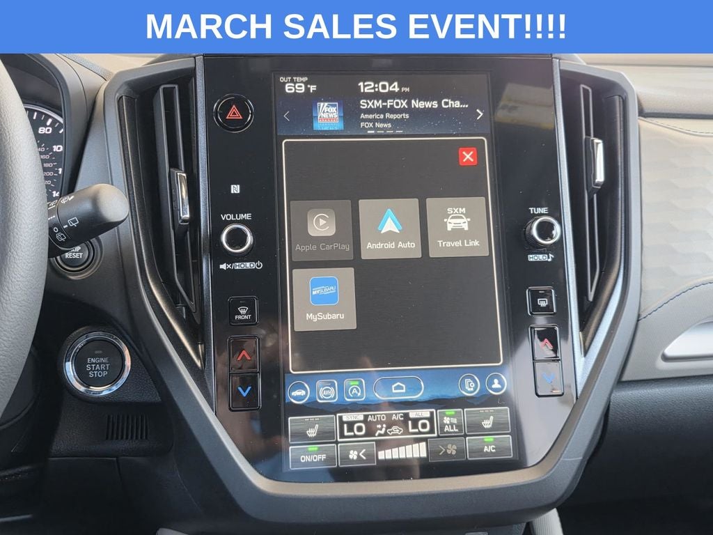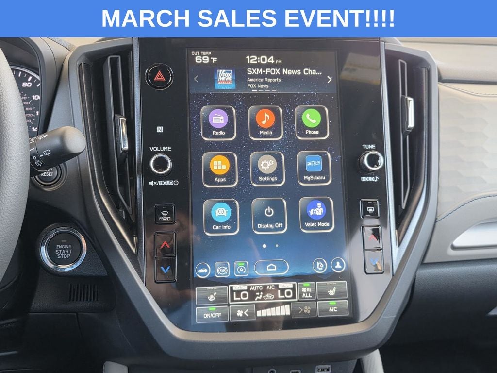 - Radio: Subaru 11.6" Multimedia Plus System -inc: valet mode, integrated center information display, AM/FM stereo HD Radio, multi-touch gesture high resolution display screen, voice activated controls, Bluetooth® audio streaming and hands-free phone connectivity w/SMS text messaging (refer to Subaru.com for cellphone compatibility), iPod control capability, smartphone integration: Android Auto and Apple CarPlay w/full screen view and wireless connection, SiriusXM satellite radio w/360L (free 4-month trial subscription included), USB and Over The Air (OTA) audio system update, steering wheel controls, 6 speakers, 3.5mm auxiliary input jack and roof mounted audio and satellite antenna