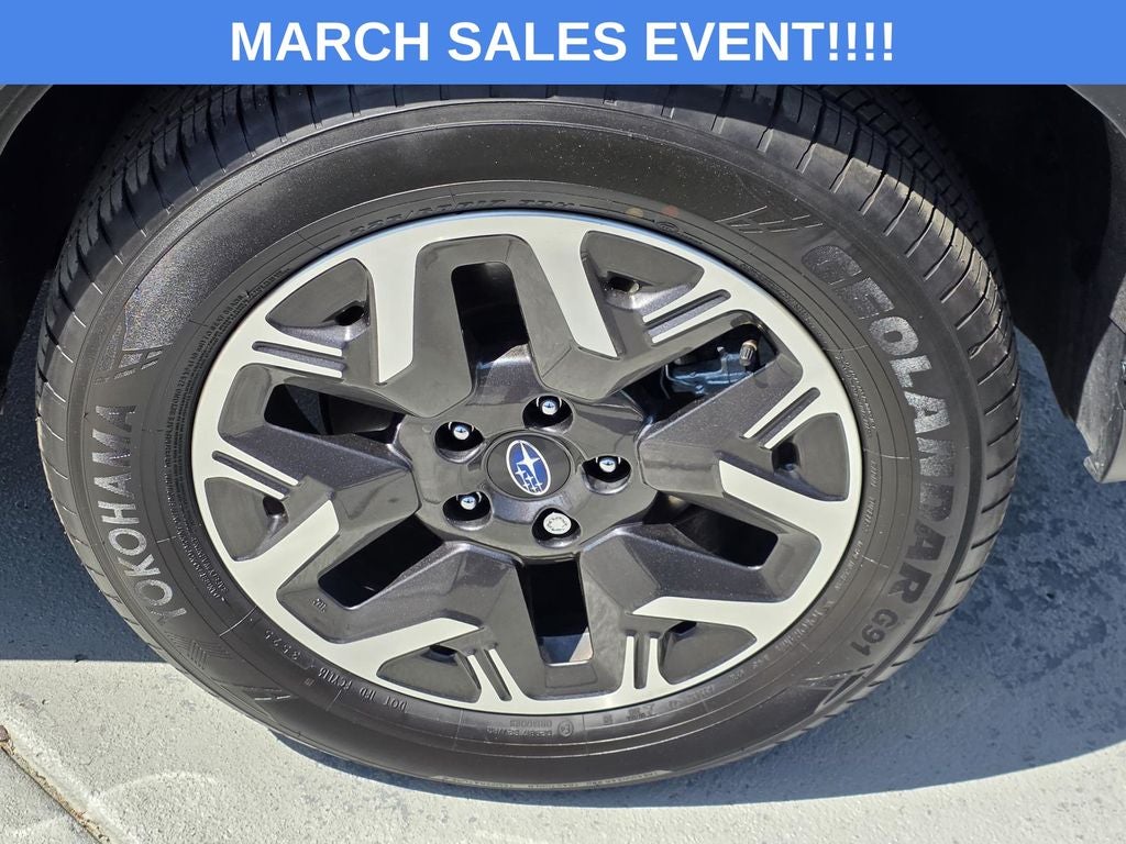 - Wheels: 17" x 7.0 J Dark Metallic Aluminum-Alloy -inc: machine finish and black wheel center cap w/Subaru 6 star logo